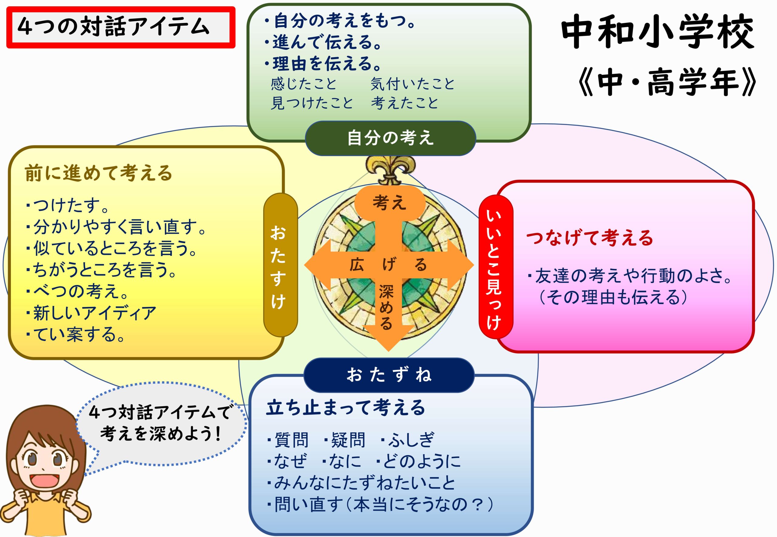 そして最後が、「おたすけ」です。友だちが言葉に詰まったとき、「〇〇ちゃんの言いたいことってこういうことかな?」とかみ砕いて助ける。あるいは、話し合いのなかで「こういうアイデアはどうかな?」と新しい視点を提案する。この4つが使えるようになると、自分の考えが深まったり広がったりするのです。